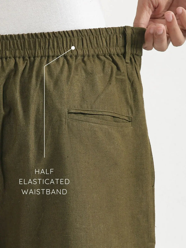 Men Olive Green Linen Blend Straight Pant