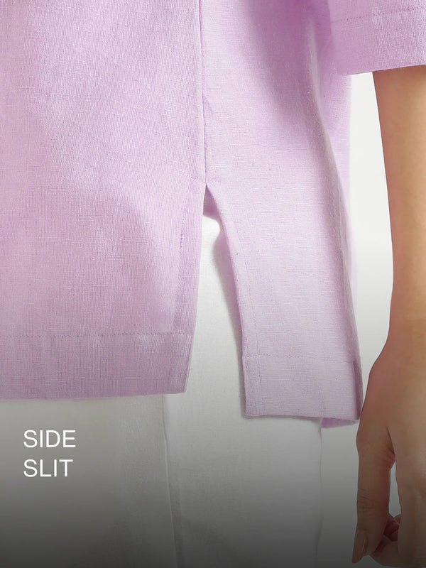 Airy-Linen Split Neck Short Kurta