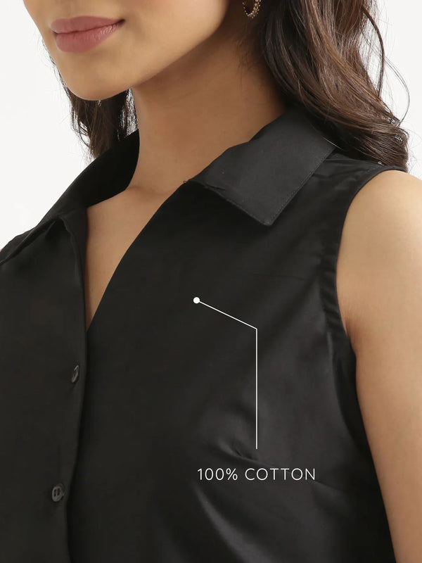 Women Black Better Cotton Sleeveless Shirt
