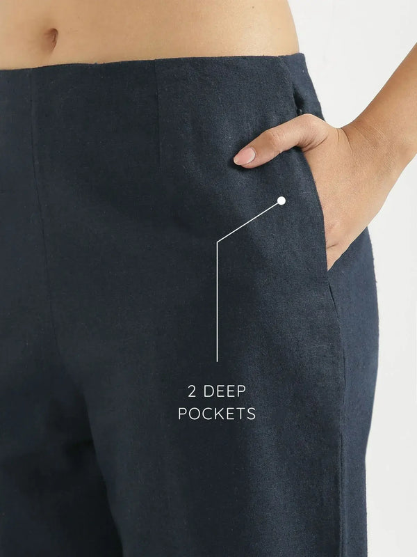 Women Black Linen Blend Wide Leg Pant