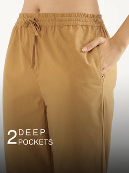 Women Coffee Brown Cotton Straight Pant