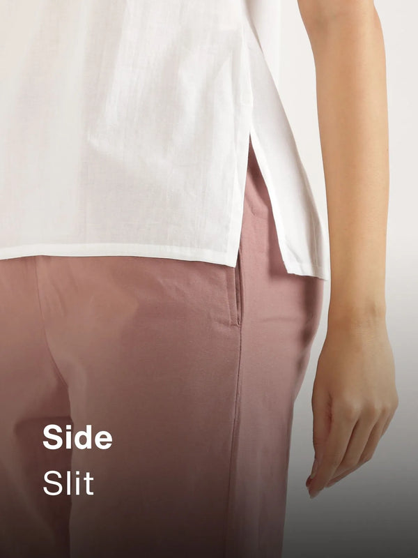 Airy-Linen Split Neck Short Kurta